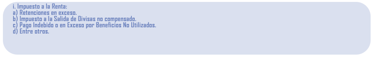 • Los casilleros informativos de la declaracón de Impuesto a la Renta Anual,